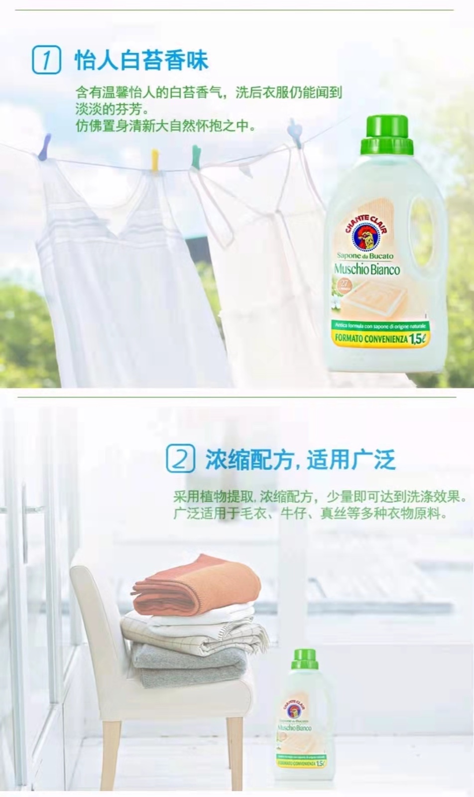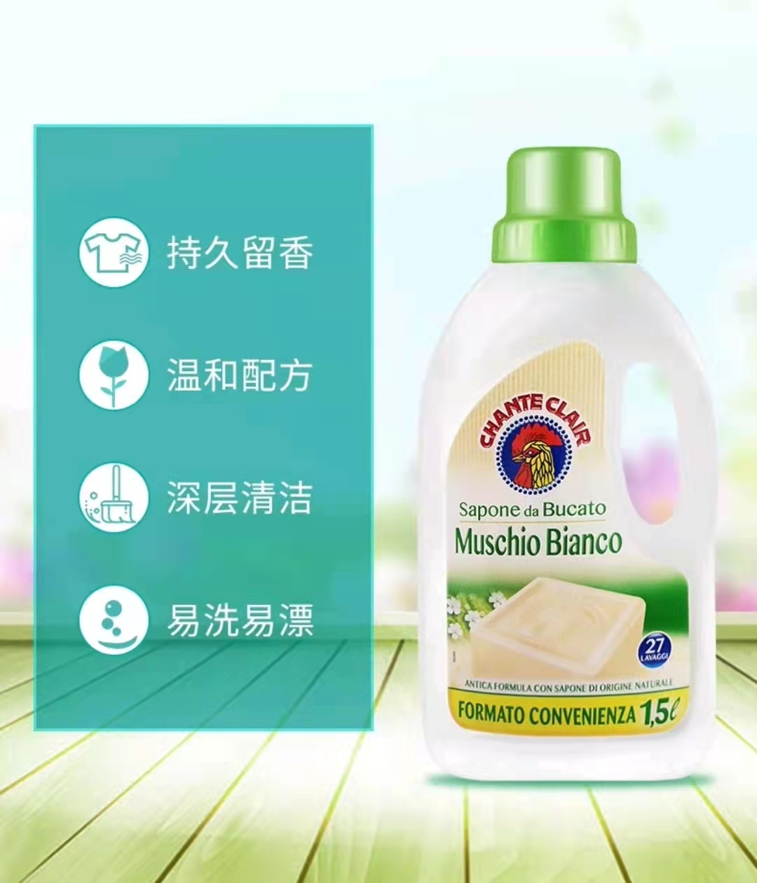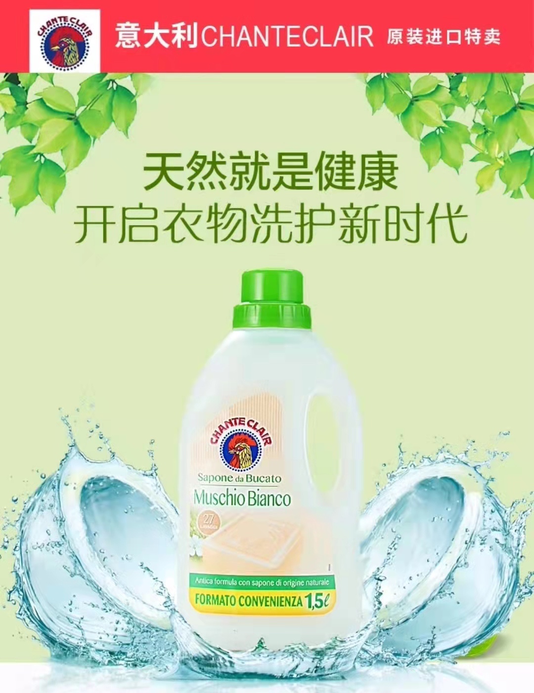 意大利大公鸡管家 天然护理浓缩洗衣液 经典香型(白苔味)1.5L