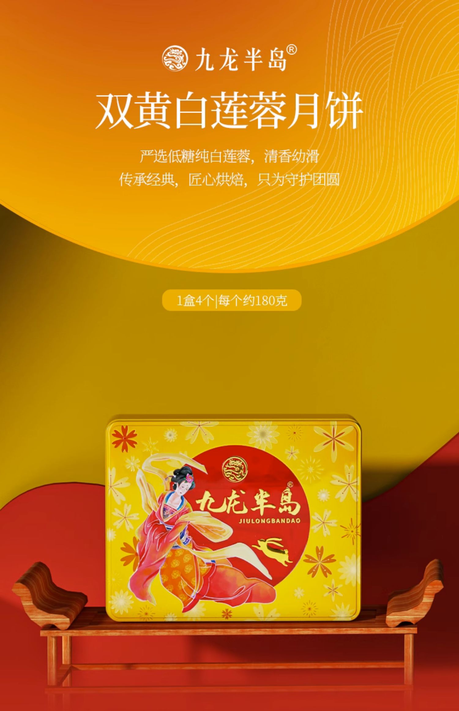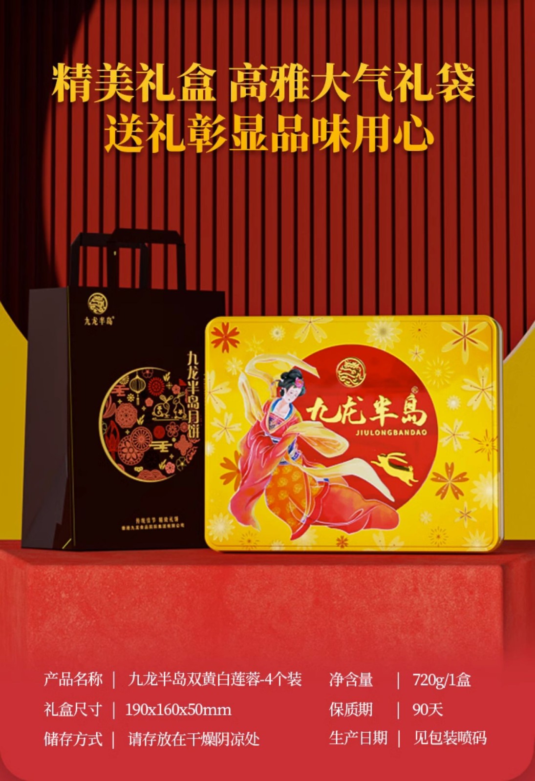 九龙半岛双黄白莲蓉月饼(精装礼盒/4个装)720g